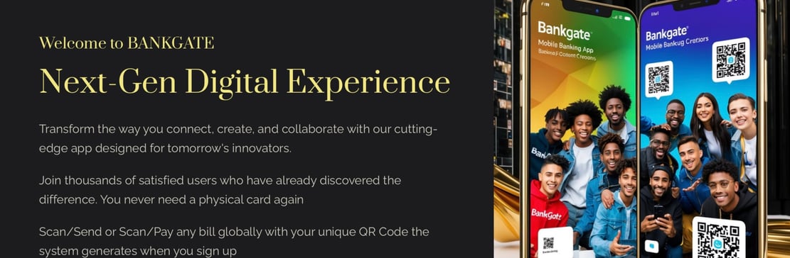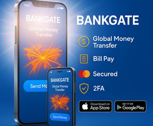 Bankgate is a global platform for money transfers and bill payments, it issues a virtual debit card and a unique QR code when you Sign UP. Use the App for seamless transactions across devices and ATM's.